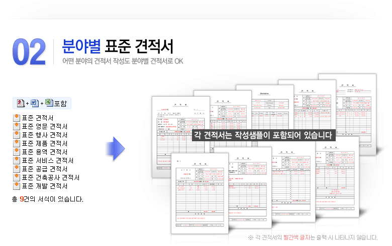 ÀϹÝÀûÀ¸·Î ¸ðµç ºÐ¾ß¿¡ »ç¿ëÇÒ ¼ö Àִ ǥÁØ °ßÀû¼ÀÔ´Ï´Ù. °ø±ÞÀÚ, ÇÕ°è±Ý¾×, ǰ¸í, ±Ô°Ý, ´Ü°¡ µîÀÇ Ç׸ñÀ¸·Î ±¸¼ºµÇ¾î ÀÖ½À´Ï´Ù. °ßÀû¼´Â »óǰÀ̳ª ¼ºñ½º¸¦ Á¦°øÇÏ·Á´Â °ø±ÞÀÚ°¡ ±¸¸ÅÀÚ¿¡°Ô °Å·¡¿¡ ÇÊ¿äÇÑ ºñ¿ë°ú Á¶°ÇÀ» °ø½ÄÀûÀ¸·Î Á¦½ÃÇÏ´Â ¹®¼·Î, »ç¾÷ÀÇ ¸ðµç °Å·¡ Ȱµ¿¿¡¼ ½Å·Ú¸¦ ±¸ÃàÇÏ°í ºÐÀïÀ» ¿¹¹æÇϸç, ÃÖÁ¾ °è¾à ü°áÀÇ Áß¿äÇÑ ±â¹ÝÀÌ µÇ´Â ¹®¼ÀÔ´Ï´Ù. µû¶ó¼ °ßÀû¼´Â ´Ü¼øÈ÷ °¡°ÝÀ» ³ª¿ÇÏ´Â °ÍÀ» ³Ñ¾î, °Å·¡ÀÇ Åõ¸í¼º°ú ÇÕ¸®¼ºÀ» º¸¿©ÁÖ´Â ÇÙ½É ¼·ù¶ó°í ÇÒ ¼ö ÀÖ½À´Ï´Ù. ¡Ø °ÇÃà°ø»ç, Á¦Ç°, Çà»ç, °³¹ß, ¼ºñ½º, ¿ë¿ª, °ø±Þ, ¿µ¹® °ü·Ã ºÐ¾ß¿¡ Àû¿ëÇÏ¿© »ç¿ëÇÒ ¼ö ÀÖ´Â ºÐ¾ßº° Ç¥ÁØ °ßÀû¼°¡ Æ÷ÇԵǾî ÀÖ½À´Ï´Ù. |