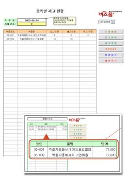 ÀÔ°í/Ãâ°í·®ÀÇ ÀԷ½à Á¦Ç°Äڵ常 ÀÔ·ÂÇϸé ÀÚµ¿À¸·Î ǰ¸í ¹× ´Ü°¡¸¦ ÀÔ½ÄÇÏ¿© ¼ö·®¿¡ ´ëºñÇÏ¿© ÀÔ°í/Ãâ°í±Ý¾×À» °è»êÇϸç ÀÔ°í/Ãâ°íµÈ ÇöȲÀ» Á¦Ç°ÇöȲ½ÃÆ®¿¡¼ ±âÁØÀÏÀÚ ÀԷ½à ±âÁØÀÏÀÚ ÀÌÀü±îÁöÀÇ »çÇ׿¡ ´ëÇØ ÀÚÀç °Ç¼ö ¹× Á¦Ç°º° ÀÔ/Ãâ°í¼ö·®, Àç°í¼ö·®À» È®ÀÎ ÇÒ ¼ö ÀÖ´Â ÀÚµ¿È¼½ÄÀÔ´Ï´Ù.