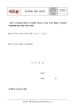Á¤±âÁÖÁÖÃÑȸ¿¡ ´ë¸®ÀÎÀ» Âü¼®½Ãų¶§ »ç¿ëµÇ´Â ¼­½ÄÀ¸·Î ±¸¼º¿ä¼Ò´Â ÀϽÃ, Àå¼Ò, ȸ»ç¸íµîÀ¸·Î ±¸¼ºµÇ¾î ÀÖÀ¸¸ç ÃÑȸ¿¡ Ãâ¼®ÇÏ´Â ÁÖÁÖÀÇ ´ë¸®ÀÎÀº ´ë¸®±ÇÀ» Áõ¸íÇÏ´Â ÁÖÁÖÃÑȸ ´ë¸®ÀÎ À§ÀÓÀåÀ» ȸ»ç¿¡ Á¦ÃâÇÏ¿©¾ß ÇÑ´Ù.