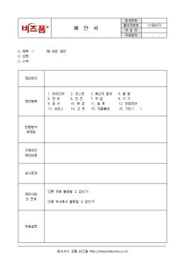 ȸ»ç¿¡ »õ·Î¿î Á¦¾ÈÀ» ÇϰíÀÚ ÇÒ¶§ »ç¿ëµÇ´Â ¼­½ÄÀ¸·Î ±¸¼º¿ä¼Ò´Â Á¦¾ÈÃëÁö, Á¦¾ÈºÐ·ù, ½Ç½ÃÈ¿°úµîÀ¸·Î ±¸¼ºµÇ¾î ÀÖÀ¸¸ç Á¦¾È¼­ÀÇ Á¦ÃâÀº ¼Ò¼ÓºÎ¼­ÀåÀÇ Á¦¾ÈÃßõ¼­¿¡ ÷ºÎÇÏ¿© Á¦¾È°ü¸®ºÎ¼­¿¡ Á¢¼öÇÏ¿©¾ß ÇÑ´Ù.