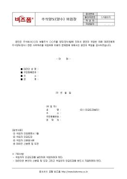 ȸ»çÀÇ ÁÖ½ÄÀ» ¾çµµ ¶Ç´Â ¾ç¼öÇÒ¶§ À§ÀÓÇÑ »ç¶÷¿¡°Ô »ç¹«Ã³¸®¸¦ À§ÀÓÇÒ¶§ »ç¿ëÇÏ´Â ¼­½ÄÀÌ´Ù. ±¸¼º¿ä¼Ò´Â ´ë¸®Àμº¸í, ÁÖ¼Ò, °ü°èµîÀ¸·Î ±¸¼ºµÇ¾î ÀÖÀ¸¸ç ÇØ´ç°Å·¡ÀÚ¿¡°Ô Áõ¸íÇÏ¿©¾ß ÇÑ´Ù
