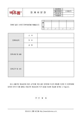 »ç¿øÀÌ À߸øÀ¸·Î ¡°èóºÐÀ» ³»¸± °æ¿ì¿¡ »ç¿ëÇÏ´Â ¼­½ÄÀÌ´Ù. ±¸¼º¿ä¼Ò´Â ¡°è´ë»óÀÚ, ¡°è»çÇ׳»¿ë, ¡°è±Ù°ÅÀÌÀ¯µîÀ¸·Î ±¸¼ºµÇ¾î ÀÖÀ¸¸ç ¡°èóºÐÀåÀ» ±³ºÎÇÏ´Â µ¿½Ã¿¡ Á÷¿ø°³Àκ° ±â·ÏÄ«µå¿¡ ±â·ÏÇϰí Àλç¸í·ÉÀ¸·Î ¹ß·ÉÇÑ ÈÄ Áï½Ã ¡°èóºÐÀå »çº»À» ÷ºÎÇÏ¿© »ç°ÇÀÇ ³»¿ëÀ» º»»ç¿¡ º¸°íÇÏ¿©¾ß ÇÑ´Ù.