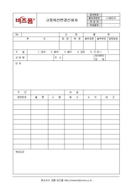 °íÁ¤ÀÚ»êÀÇ º¯µ¿ »çÇ×À» ±â·Ï/½ÅûÇÏ´Â °íÁ¤Àڻ꺯°æ½Åû¼ÀÔ´Ï´Ù. ºÎ¼, ±¸ºÐ, ÀÌÀ¯, ºÎ´ëÁ¶°Ç µîÀÇ Ç׸ñÀ¸·Î ±¸¼ºµÇ¾îÀÖÀ¸¸ç °íÁ¤ÀÚ»ê°ü¸®Ã¥ÀÓÀÚ´Â °íÁ¤ÀÚ»êÀÇ º¯µ¿ »çÇ× ¹ß»ý ½Ã ÀÛ¼º, ´ã´ç ºÎ¼Àå¿¡°Ô º¸°íÇÕ´Ï´Ù.