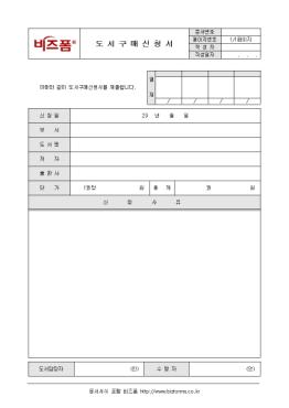 µµ¼ÀÇ ±¸¸ÅÀ» ½ÅûÇÏ´Â µµ¼±¸¸Å½Åû¼ÀÔ´Ï´Ù. ½ÅûÀÏ, ºÎ¼, µµ¼¸í, ÃâÆÇ»ç, ½Åû»çÀ¯ µîÀÇ Ç׸ñÀ¸·Î ±¸¼ºµÇ¾îÀÖÀ¸¸ç ÀÛ¼º ÈÄ °ü¸®Ã¥ÀÓÀÚ¸¦ °ÅÃÄ ±¸ÀÔ´ã´çºÎ¼¿¡ Á¦ÃâÇÏ°í ±¸ÀÔÀ» ÀÇ·ÚÇÕ´Ï´Ù.