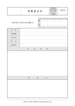 ¾÷¹« »ó ¹ÌÆÃ¿¡ °üÇÑ »çÇ×À» ±â·Ï/º¸°íÇÏ´Â ¹ÌÆÃº¸°í¼­ÀÔ´Ï´Ù. °³¿ä, ¹ÌÆÃ¾÷ü, Âü¼®ÀÚ, »ó¼¼³»¿ë µîÀÇ Ç׸ñÀ¸·Î ±¸¼ºµÇ¾îÀÖÀ¸¸ç ÇØ´çºÎ¼­Àå¿¡°Ô Á¦ÃâÇÕ´Ï´Ù.