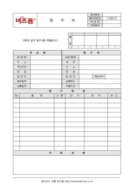 Á¦Ç°ÀÇ ¹ßÁÖ¸¦ ½ÅûÇÒ ¶§ »ç¿ëÇÏ´Â ¹ßÁÖ¼ÀÔ´Ï´Ù. °ø±ÞÀÚ, ¹ßÁÖÀÚ, ¹ßÁÖ³»¿ë, ±âŸ»çÇ× µîÀÇ Ç׸ñÀ¸·Î ±¸¼ºµÇ¾îÀÖÀ¸¸ç ¹ßÁÖ´ã´çÀÚ¿¡°Ô Á¦ÃâÇÕ´Ï´Ù.