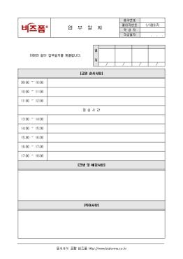 ÇÏ·ç ÀϰúÁß ÀÛ¾÷Çß´ø ³»¿ëÀ» ÀÛ¼ºÇÒ¶§ »ç¿ëÇÕ´Ï´Ù. ±¸¼º¿ä¼Ò´Â ±ÝÀϽǽûçÇ×, ÁøÇà¹×¿¹Á¤»çÇ×, ƯÀÌ»çÇ×À¸·Î ±¸¼ºµÇ¾î ÀÖÀ¸¸ç ÀÛ¼ºÈÄ ÇØ´ç ºÎ¼­Àå¿¡°Ô Á¦ÃâÇÏ¿© ½ÂÀÎÀ» ¾ò¾î¾ß ÇÕ´Ï´Ù.