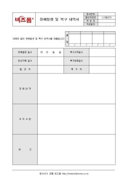 ½Ã½ºÅÛ Àå¾Ö¹ß»ý ¹× º¹±¸¿¡ °üÇÑ »çÇ×À» ±â·Ï/º¸°íÇÏ´Â Àå¾Ö¹ß»ý¹×º¹±¸³»¿ª¼­ÀÔ´Ï´Ù. Àå¾Ö¹ß»ýÀϽÃ, Á¤»ó°¡µ¿ÀϽÃ, ¹ß°ßÀÚ, Á¶Ä¡»çÇ× µîÀÇ Ç׸ñÀ¸·Î ±¸¼ºµÇ¾îÀÖ½À´Ï´Ù. º¹±¸ÀÚ°¡ ÀÛ¼º/º¸°íÇÕ´Ï´Ù.