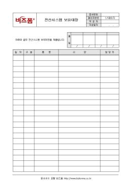 Àü»ê½Ã½ºÅÛ º¸À¯ ÇöȲÀ» ±â·Ï/°ü¸®ÇÏ´Â Àü»ê½Ã½ºÅÛº¸À¯´ëÀåÀÔ´Ï´Ù. ÀÏÀÚ, ±¸ºÐ, ǰ¸í, »ç¾ç, ´ã´çÀÚÀÇ Ç׸ñÀ¸·Î ±¸¼ºµÇ¾îÀÖÀ¸¸ç °ü¸®´ã´çÀÚ°¡ ±â·Ï/°ü¸®ÇÕ´Ï´Ù.
