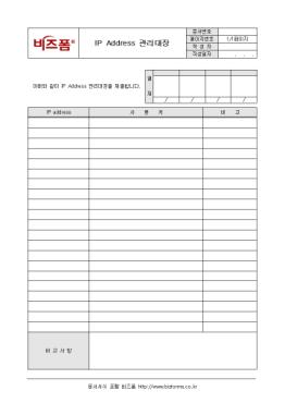 IP Address °ü¸®¿¡ ÇÊ¿äÇÑ IP Address °ü¸®´ëÀåÀÔ´Ï´Ù. IP Address, »ç¿ëó, ºñ°íÀÇ Ç׸ñÀ¸·Î ±¸¼ºµÇ¾îÀÖÀ¸¸ç °ü¸®´ã´çÀÚ°¡ ±â·Ï/°ü¸®ÇÕ´Ï´Ù.
