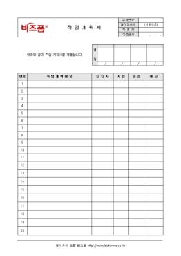 ÀÛ¾÷°èȹ¿¡ ´ëÇØ °£´ÜÈ÷ Á¤¸®ÇÒ ¼ö ÀÖ´Â ÀÛ¾÷°èȹ¼­ ¾ç½ÄÀÔ´Ï´Ù. ÀÛ¾÷°èȹ³»¿ë, ´ã´çÀÚ, ½ÃÁ¡, ÁßÁ¡ µîÀÇ Ç׸ñÀ¸·Î ±¸¼ºµÇ¾î ÀÖÀ¸¸ç, °¢°¢ÀÇ ÀÛ¾÷¿¡ ´ëÇÑ ´ã´çÀÚ¸¦ ±¸ºÐÇÏ¿© Á¤È®ÇÏ°Ô ±âÀÔÇÕ´Ï´Ù.