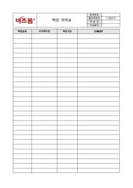ÇÁ·ÎÁ§Æ® ¾÷¹«¿Í °ü·ÃµÈ ÆÄÀÏÀ» ¹é¾÷ÇÒ ½Ã °ü·Ã »çÇ×À» ±â·Ï/ °ü¸®ÇÒ ¼ö ÀÖ´Â ¹é¾÷ ¸ñ·ÏÇ¥ ¾ç½ÄÀÔ´Ï´Ù. ¹é¾÷ÀÏÀÚ, ÇÁ·ÎÁ§Æ®¸í, ¹é¾÷±¸ºÐ, »ó¼¼³»¿ëÀÇ Ç׸ñÀ¸·Î ±¸¼ºµÇ¾îÀÖÀ¸¸ç ´ã´çÀÚ°¡ ÀÛ¼ºÇÕ´Ï´Ù.