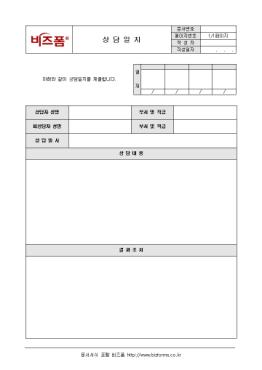 »ç¿ø¸é´ã ¹× »ó´ã ÈÄ ÀÛ¼ºÇÏ´Â »ó´ãÀÏÁö ÀÔ´Ï´Ù. »ó´ãÀÚ ¼º¸í, ÇÇ»ó´ãÀÚ ¼º¸í, »ó´ã³»¿ë, °á°úÁ¶Ä¡µîÀÇ Ç׸ñÀ¸·Î ±¸¼ºµÇ¾î ÀÖÀ¸¸ç, ÀÛ¼ºÈÄ ´ã´çÀÚ¿¡°Ô º¸°íÇÕ´Ï´Ù.