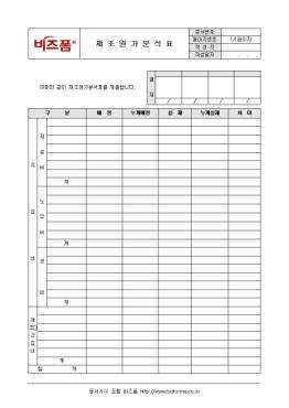 Á¦Á¶¿ø°¡ÀÇ Á÷Á¢ºñ¿Í Á¦Á¶°£Á¢ºñ¿¡ ´ëÇÏ¿© ¿¹Á¤¾×°ú ½ÇÁ¦¾×ÀÇ Â÷À̸¦ ºñ±³ ºÐ¼®ÇÏ´Â Á¦Á¶¿ø°¡ºÐ¼®Ç¥ ¾ç½ÄÀÔ´Ï´Ù. Á÷Á¢ºñ, Á¦Á¶°£Á¢ºñÀÇ ¿¹Á¤, ´©°è¿¹Á¤, ½ÇÁ¦, ´©°è½ÇÁ¦, Â÷ÀÌ µîÀÇ Ç׸ñÀ¸·Î ±¸¼ºµÇ¾î ÀÖ½À´Ï´Ù.