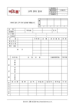 º¸Çèȸ»ç¿¡¼ »ç¿ëÇÒ ¼ö ÀÖ´Â °í°´°ü¸® ÀϺ¸ ¾ç½ÄÀ¸·Î, ÀÎÀû»çÇ× ¹× ¹æ¹®»óȲ, ÇöÀç°è¾à»óȲ µîÀÇ Ç׸ñÀ¸·Î ±¸¼ºµÇ¾î ÀÖ½À´Ï´Ù.