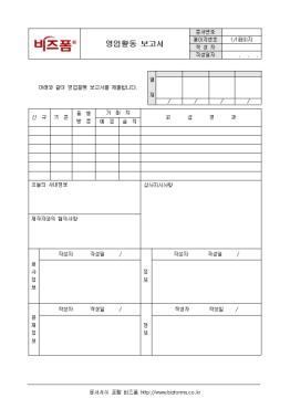 °Å·¡Ã³ ¹æ¹®±â·Ï¿¡¼ ±³¼·³»¿ë±îÁö ¿µ¾÷Ȱµ¿¿¡ °ü°èµÈ ³»¿ëÀ» ±â·ÏÇÒ ¼ö ÀÖ´Â ¿µ¾÷Ȱµ¿ º¸°í¼ ¾ç½ÄÀ¸·Î, ½Å±Ô, ±âÁ¸, µ¿Çà¹æ¹®, °Å·¡Ã³, ±³¼·°æ°ú µîÀÇ Ç׸ñÀ¸·Î ±¸¼ºµÇ¾î ÀÖ½À´Ï´Ù.