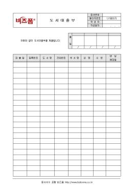 µµ¼¸¦ ´ëÃâÇÏ´Â ¶§ ÀÛ¼ºÇÏ´Â µµ¼´ëÃâºÎÀÔ´Ï´Ù. ´ëÃâÀÏ, µî·Ï¹øÈ£, µµ¼¸í, ÀüȹøÈ£ µîÀÇ Ç׸ñÀ¸·Î ±¸¼ºµÇ¾îÀÖÀ¸¸ç µµ¼°ü¸®Ã¥ÀÓÀÚ´Â µµ¼´ëÃâºÎ¸¦ ÀÛ¼ºÇϰí Â÷¿ëÀÚÀÎÀ» ¹Þ½À´Ï´Ù.