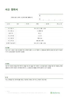 ±Ù¹«Áß Â÷·® »ç°í½Ã Á¦ÃâÇÏ´Â »ç°í°æÀ§¼ ¾ç½ÄÀ¸·Î, »ç°íÀϽÃ, ¿îÀüÀÚ, »ç°íÂ÷·®, »ç°í¹üÀ§ µîÀÇ Ç׸ñÀ¸·Î ±¸¼ºµÇ¾î ÀÖ½À´Ï´Ù.