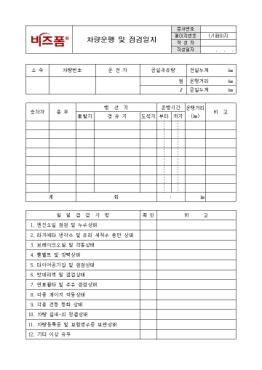 Â÷·®°ü¸®¸¦ À§ÇÑ Â÷·®¿îÇà ¹× Á¡°ËÀÏÁö ¾ç½ÄÀÔ´Ï´Ù.½ÂÂ÷ÀÚ, ¿ë¹«, Ç༱Áö, ¿îÇà½Ã°£, ¿îÇà°Å¸® µîÀÇ Ç׸ñ°ú Á¡°Ë»çÇ×À» üũÇÒ ¼ö ÀÖµµ·Ï ±¸¼ºµÇ¾î ÀÖ½À´Ï´Ù.