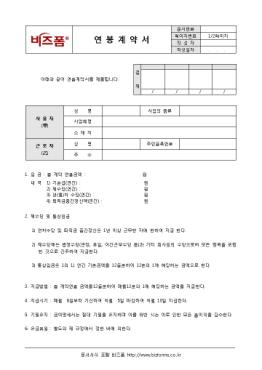 »ç¿ëÀÚ¿Í ±Ù·ÎÀÚ·Î ±¸ºÐÇÏ¿© ¿¬ºÀ ¹× Á¦¼ö´ç°ú °ü·ÃÇÏ¿© Áö±Þ±â°£, ±Ù·Î½Ã°£, Áö±Þ½Ã±â µî ȸ»ç ±Ù·Î¿¡ À¯ÀÇÇØ¾ß ÇÒ »çÇ×À» ±â¼úÇÏ¿© È®ÀÎ ÈÄ ¼­¸íÀ» ¹Þ¾Æ °ü¸®ÇÏ´Â ¿¬ºÀ°è¾à¼­ Ç¥Áؾç½ÄÀÔ´Ï´Ù.
