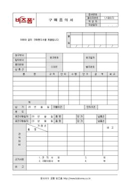 ±¸¸ÅÇÒ ¹°Ç°ÀÇ ³»¿ªÀ» ±â·ÏÇÏ°í ±¸¸Å¿äûÇÏ´Â ±¸¸ÅǰÀǼÀÔ´Ï´Ù. û±¸ºÎ¼, ÇÕÀǺμ, ǰÀǹøÈ£, ǰ¸í, ±Ô°Ý, ´ÜÀ§, ¼ö·® µîÀÇ Ç׸ñÀ¸·Î ±¸¼ºµÇ¾îÀÖ´Â ±¸¸ÅǰÀǼÀÔ´Ï´Ù.
