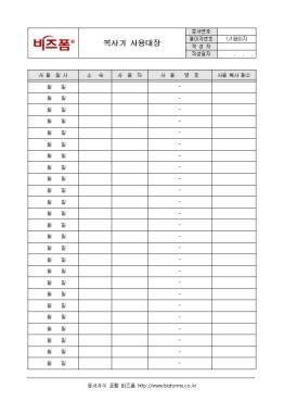 º¹»ç±â »ç¿ë¿¡ ´ëÇÑ ÇöȲÀ» ±â·Ï/ °ü¸®ÇÏ´Â º¹»ç±â»ç¿ë´ëÀåÀÔ´Ï´Ù. »ç¿ëÀϽÃ, ¼Ò¼Ó, »ç¿ëÀÚ, »ç¿ë¹øÈ£ µîÀÇ Ç׸ñÀ¸·Î ±¸¼ºµÇ¾îÀÖ½À´Ï´Ù.