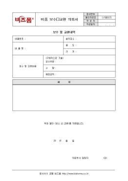 ºñǰÀÇ º¸¼ö ¹× ±³È¯À» ÀÇ·ÚÇÒ ¶§ »ç¿ëÇÏ´Â ºñǰ º¸¼ö¡¤±³È¯ ÀÇ·Ú¼ÀÔ´Ï´Ù. ºñǰ¹øÈ£, ºñǰ¸í, º¸¼ö ¹× ±³È¯³»¿ë, »çÀ¯ µîÀÇ Ç׸ñÀ¸·Î ±¸¼ºµÇ¾îÀÖ½À´Ï´Ù.
