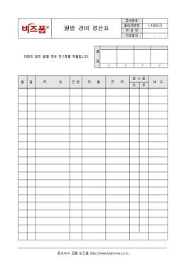 ¿ù °æºñ Á¤»ê¿¡ °üÇÑ »çÇ×À» ±â·Ï/ °ü¸®ÇÒ ¼ö ÀÖ´Â ¿ù¸» °æºñ Á¤»ê¼­ÀÔ´Ï´Ù. ³¯Â¥, Àû¿ä, Àοø, ÁöÃâ, ÀÜ¾× µîÀÇ Ç׸ñÀ¸·Î ±¸¼ºµÇ¾îÀÖ½À´Ï´Ù.