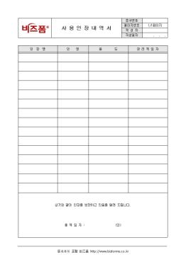 ¾ÈÀå »ç¿ë ³»¿ªÀ» ±â·Ï/ °ü¸®ÇÏ´Â »ç¿ëÀÎÀå³»¿ª¼ÀÔ´Ï´Ù. ÀÎÀå¸í, Àοµ, ¿ëµµ µîÀÇ Ç׸ñÀ¸·Î ±¸¼ºµÇ¾îÀÖ½À´Ï´Ù.