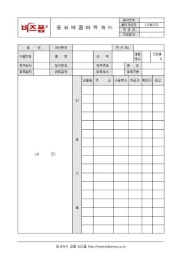 Áß¿äºñǰÀÇ ÀÌ·Â ³»¿ëÀ» ±â·Ï/ °ü¸®ÇÏ´Â Áß¿äºñǰÀÌ·ÂÄ«µåÀÔ´Ï´Ù. ¼³ºñ, ½Äº°¹øÈ£, Á¦ÀÛȸ»ç, ÀÚ»ê¹øÈ£, ǰ¸í, Çü½Ä¹øÈ£, Ãëµæ±Ý¾× µîÀÇ Ç׸ñÀ¸·Î ±¸¼ºµÇ¾îÀÖ½À´Ï´Ù.