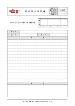 Çà»ç¾÷¹« °èȹ ¼ö¸³ ½Ã »ç¿ëÇÒ ¼ö ÀÖ´Â Çà»ç¾÷¹«°èȹ¼ÀÔ´Ï´Ù. Çà»ç¸í, ÀϽÃ, Àå¼Ò, ¸ñÀû µîÀÇ Ç׸ñÀ¸·Î ±¸¼ºµÇ¾îÀÖ½À´Ï´Ù.