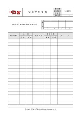 ¹°Ç°¿î¹Ý¿¡ °üÇÑ »çÇ×À» ±â·Ï/ °ü¸®ÇÒ ¶§ »ç¿ëÇÏ´Â ¹°Ç°¿î¹ÝÀÏÁöÀÔ´Ï´Ù. ¿î¹Ý¹°Ç°¸í, ¼ö·®, ¿î¹Ý±¸°£, ¿î¹Ý½Ã°£ µîÀÇ Ç׸ñÀ¸·Î ±¸¼ºµÇ¾îÀÖ½À´Ï´Ù.