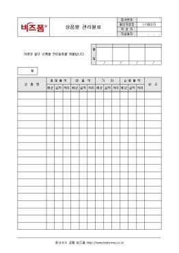 »óǰº°·Î ¿ù°£ ¸ÅÃâ ¹× ¹Ýǰ µîÀÇ ³»¿ªÀ» ±â·Ï/ °ü¸®ÇÒ ¼ö ÀÖ´Â »óǰº° °ü¸®¿ùº¸ÀÔ´Ï´Ù. »óǰ¸í, ÃѸÅÃâ¾×, ¹Ýǰ¾×, ±âŸ µîÀÇ Ç׸ñÀ¸·Î ±¸¼ºµÇ¾îÀÖ½À´Ï´Ù.
