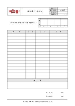 Àç·áÀÇ Ãâ°í¸¦ û±¸ÇÒ ¶§ »ç¿ëÇÏ´Â Àç·áÃâ°íû±¸¼ÀÔ´Ï´Ù. ǰ¸í, ¼ö·®, ´Ü°¡, ±Ý¾× µîÀÇ Ç׸ñÀ¸·Î ±¸¼ºµÇ¾îÀÖ½À´Ï´Ù.