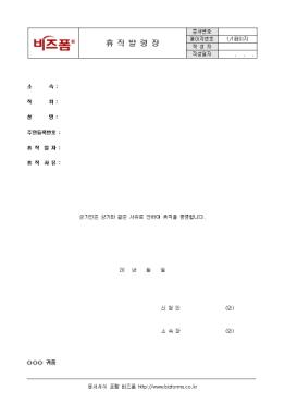 ÈÞÁ÷À» ¹ß·ÉÇϰí Áõ¸íÇÒ ¶§ »ç¿ëÇÒ ¼ö ÀÖ´Â ÈÞÁ÷¹ß·ÉÀåÀÔ´Ï´Ù. ¼Ò¼Ó, Á÷À§, ¼º¸í, ÈÞÁ÷ÀÏÀÚ, ÈÞÁ÷»çÀ¯ µîÀÇ Ç׸ñÀ¸·Î ±¸¼ºµÇ¾îÀÖ½À´Ï´Ù.