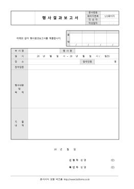 ȸ»ç Çà»ç ½Ç½Ã ÈÄ ±× °á°ú¸¦ ±â·Ï/ º¸°íÇÒ ¶§ »ç¿ëÇÏ´Â Çà»ç°á°úº¸°í¼ÀÔ´Ï´Ù. ºÎ¼¸í, Çà»ç¸í, Âü¼®ÀÓ¿ø, ³»¿ë ¹× ¸ñÀû, ÁöÃâ³»¿ª µîÀÇ Ç׸ñÀ¸·Î ±¸¼ºµÇ¾îÀÖ½À´Ï´Ù.