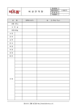 Á÷¿øÀÇ ºñ»ó¿¬¶ôó¸¦ ±â·ÏÇÏ´Â ºñ»ó¿¬¶ô¸ÁÀÔ´Ï´Ù. ¼º¸í, ¿¬¶ôó, ºñ°íÀÇ Ç׸ñÀ¸·Î ±¸¼ºµÇ¾îÀÖÀ¸¸ç ´çÁ÷½Ç¿¡ Ç×»ó ºñÄ¡µÇ¾îÀÖ¾î¾ß ÇÕ´Ï´Ù.