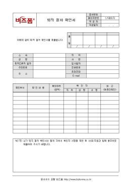 ÅðÁ÷ ½Ã ±× ÀýÂ÷¿¡ °üÇÑ »çÇ×À» ±â·Ï/ º¸°íÇÒ ¼ö ÀÖ´Â ÅðÁ÷ ÀýÂ÷ È®ÀμÀÔ´Ï´Ù. ¼Ò¼Ó, ¼º¸í, »ç¹ø, ÀÔ»çÀÏÀÚ, È®Àκμ, È®Àγ»¿ë µîÀÇ Ç׸ñÀ¸·Î ±¸¼ºµÇ¾îÀÖ´Â ÅðÁ÷ ÀýÂ÷ È®ÀμÀÔ´Ï´Ù.