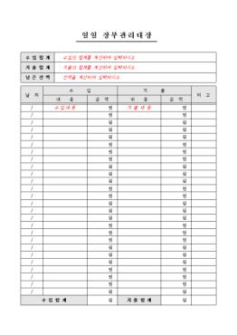 °æ¸®ºÎ¿¡¼­ »ç¿ëÇÏ´Â ÀåºÎ°ü¸®¼­½ÄÀ¸·Î ³¯Â¥º° ¼öÀÔ ¹× ÁöÃâ¿¡ ´ëÇÑ ³»¿ë ¹× ±Ý¾×À» ÀÛ¼ºÇÏ¿© ÀÏÀÏ ÀåºÎ°ü¸®¸¦ ÀÛ¼ºÇÒ ¼ö ÀÖ´Â ÀÏÀÏ ÀåºÎ°ü¸®´ëÀåÀÔ´Ï´Ù.
