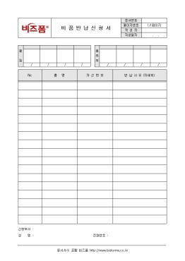 ºñǰÀÇ ¹Ý³³À» ½ÅûÇÒ ¶§ »ç¿ëÇÏ´Â ºñǰ¹Ý³³½Åû¼ÀÔ´Ï´Ù. ǰ¸í, ÀÚ»ê¹øÈ£, ¹Ý³³»çÀ¯ÀÇ Ç׸ñÀ¸·Î ±¸¼ºµÇ¾îÀÖÀ¸¸ç ºñǰÀ» ºÎ¼°£¿¡ À̵¿ÇÒ ¶§¿¡ »çÀü¿¡ ÀÛ¼º, ÅëÁ¦Ã¥ÀÓÀÚ¿¡°Ô Á¦ÃâÇÏ¿© ½ÂÀÎÀ» ¹Þ¾Æ¾ß ÇÕ´Ï´Ù.