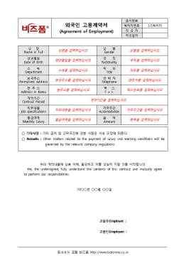 | Ç¥ÁØ ¿Ü±¹ÀÎ °í¿ë°è¾à¼(Agreement of Employment) |