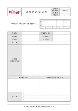 ±³À°ÈÆ·Ã ÈÄ °ü·Ã ³»¿ë ¹× »çÇ× µîÀ» ±â·Ï/ º¸°íÇÒ ¶§ »ç¿ëÇÒ ¼ö ÀÖ´Â ±³À°ÈƷú¸°í¼­ÀÔ´Ï´Ù. ±³À°±¸ºÐ, ÇDZ³À°ÀÚ, ±³À°Àå¼Ò, Á¦¸ñ, ¼ö°­³»¿ë µîÀÇ Ç׸ñÀ¸·Î ±¸¼ºµÇ¾îÀÖ½À´Ï´Ù.