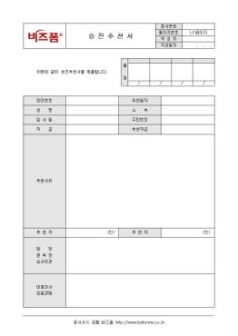 ½ÂÁø Ãßõ »çÀ¯¿Í ÀÇ°ß µîÀ» ±â·ÏÇÏ¿© ½ÂÁøÃßõ ½Ã »ç¿ëÇÒ ¼ö ÀÖ´Â ½ÂÁøÃßõ¼­ÀÔ´Ï´Ù. ÃßõÀÏÀÚ, ¼º¸í, ¼Ò¼Ó, Ãßõ»çÀ¯, ÃßõÀÚ µîÀÇ Ç׸ñÀ¸·Î ±¸¼ºµÇ¾îÀÖ½À´Ï´Ù.