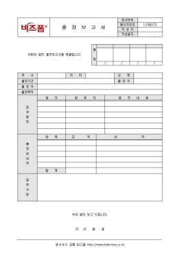 ÃâÀå ÈÄ °á°ú º¸°í ½Ã »ç¿ëÇÒ ¼ö ÀÖ´Â ÃâÀ庸°í¼ÀÔ´Ï´Ù. ºÎ¼, Á÷À§, ¼º¸í, ÃâÀå±â°£, ÃâÀåÀÚ, ÃâÀå¸ñÀû, ¾÷¹«ÀÏÁ¤ µîÀÇ Ç׸ñÀ¸·Î ±¸¼ºµÇ¾îÀÖ½À´Ï´Ù.