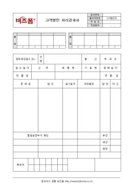 °í°´ ºÒ¸¸¿¡ ´ëÇÑ Ã³¸® °á°ú¸¦ º¸°íÇÏ´Â °í°´ºÒ¸¸ 󸮰á°ú¼ÀÔ´Ï´Ù. °í°´, Á¦Ç°¸í, ¹®Á¦Á¡, ¿øÀÎ, 󸮰á°ú µîÀÇ Ç׸ñÀ¸·Î ±¸¼ºµÇ¾îÀÖÀ¸¸ç ǰÁú°ü¸®ºÎ¼¿¡¼ Á¶Ä¡ °á°ú¸¦ ÀÛ¼º º¸°íÇÕ´Ï´Ù.