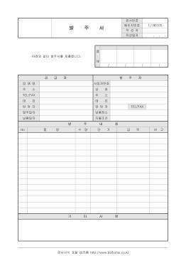 Á¦Ç°ÀÇ ¹ßÁÖ¸¦ ½ÅûÇÒ ¶§ »ç¿ëÇÏ´Â ¹ßÁÖ¼ÀÔ´Ï´Ù. °ø±ÞÀÚ, ¹ßÁÖÀÚ, ¹ßÁÖ³»¿ë, ±âŸ»çÇ× µîÀÇ Ç׸ñÀ¸·Î ±¸¼ºµÇ¾îÀÖÀ¸¸ç ¹ßÁÖ´ã´çÀÚ¿¡°Ô Á¦ÃâÇÕ´Ï´Ù.
