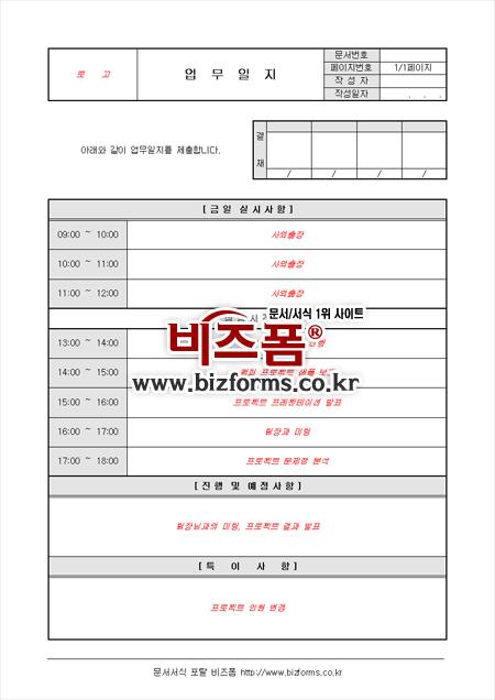 하루 일과중 작업했던 내용을 작성할때 사용합니다. 구성요소는 금일실시사항, 진행및예정사항, 특이사항으로 구성되어 있으며 작성후 해당 부서장에게 제출하여 승인을 얻어야 합니다.