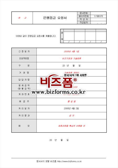타 업체와 거래시 거래대금을 요청할때 사용합니다. 구성요소는 신청일자 프로젝트명 거래명 등으로 구성되어 있으며 해당부서장에게 제출후 승인을 받아야 합니다.