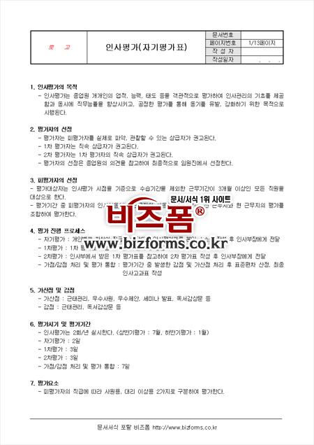 인사평가시 자기가 자신에게 평가를 할때 사용합니다. 구성요소는 9개의 항목과 자기평가를 할 수 있는 체크리스트로 구성되어 있으며 작성후 해당 부서장에게 제출하면 됩니다.