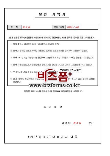 회사 보안 규정을 맹세하고 약속하여 이행할 것을 서류화하여 증명할때 사용되는 표준 근로 서약서입니다.